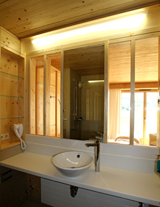 Überall beim Schwimmen, Saunieren, Ruhen, Lesen: „STILLES SCHAUEN“ auf die gewaltigen wundervollen HOCH-MOOR-WIESEN. Ereignis des modernen „GASTSEINS“ in diesem Haus: Helligkeit, Durchsichtigkeit, Offenheit, Leichtigkeit der Materialien, Homogenität und Naturhaftigkeit der Farben.